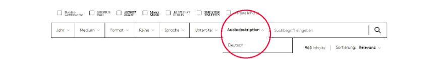 Dann bekommen Sie in der Suche nur Videos mit Audio·deskription angezeigt.