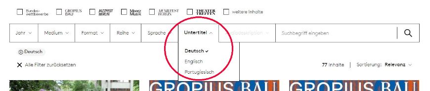 Auf der Start·seite der Mediathek gibt es eine Suche.